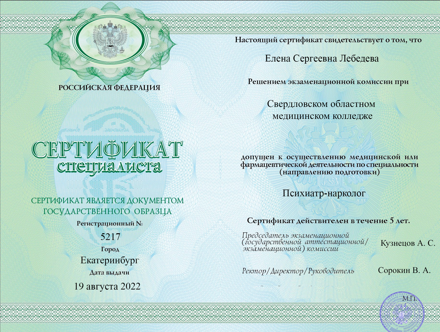 Елена Сергеевна Лебедева врач нарколог клиники доктора Стукаловой в Южноуральске